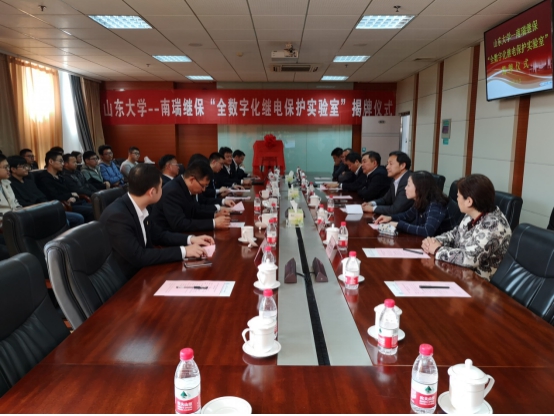 Onthe afternoon of April 3rd2019, school of electrical engineering of Shandong University and Nanjing Nanrui Jibao electric co., LTD held the unveiling ceremony of "all digital relay protection laboratory" jointly built by the university and enterprise in Xinglongshan campus.