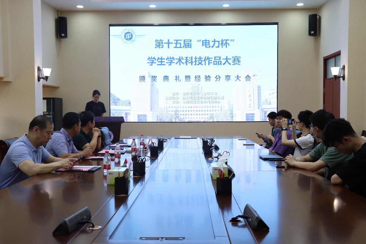 On May 26th, the award ceremony of the 15th "Electricity Trophy" Student Academic Science and Technology Works Competition sponsored by Shandong Shanda Electric Power Technology Co. After the preliminary selection and final defense, three groups of works won the first prize, five groups of works won the second prize and seven groups of works won the third prize.