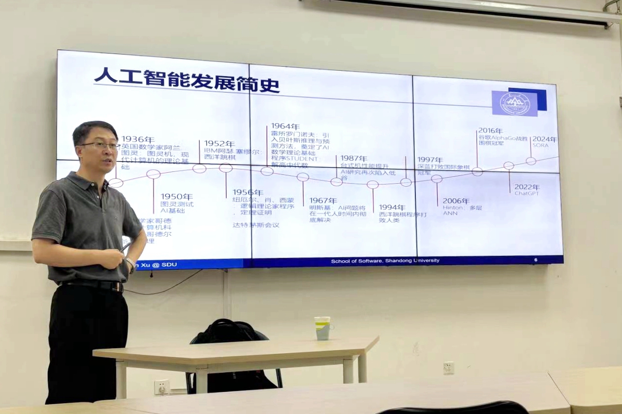 During the course, Professor Xu Xinshun from the School of Software introduced the application of AI in various fields such as healthcare, electric vehicles, and transportation, allowing us to see the future shaped by intelligence systems. Zhang Hengxu, the director of the Engineering Training Center, gave a lecture on the theme of "AI for Science", demonstrating how the application of AIAgent can change practical research. We felt the importance of integrating AI into scientific methodology to promote innovation and discovery. Teacher Shang Yong taught us about AIGC-assisted writing, introducing how to scientifically use ChatGPT and various AI-based tools to improve content creation efficiency and simplify digital workflows. In Teacher Li Dongyuan's practical class, we explored the deployment of servers and local environments, the use of commercial-grade large-scale models and APIs, the local deployment of open-source large models, Automatic Speech Recognition (ASR) technology, the construction and deployment of local chatbots, and how to use local and network-based Knowledge Base to achieve retrieval-enhanced generation (RAG). We learned how to fine-tune large language models (LLM) using local datasets. The practical class improved our ability to effectively apply artificial intelligence technology.