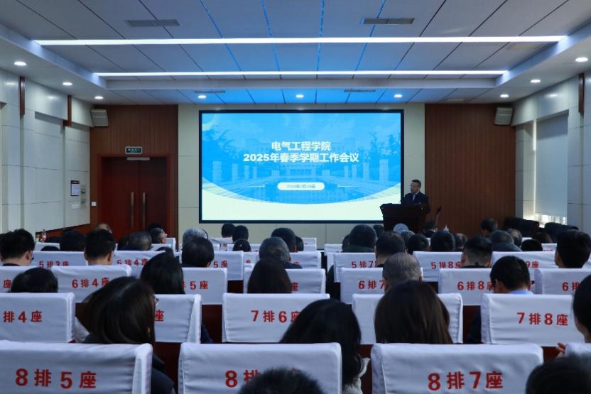 On the afternoon of February 24th, the School of Electrical Engineering held a new semester work meeting to convey the spirit of the school meeting and arrange and deploy the school's new semester work tasks. Yin Lumin, the secretary of the college party committee, presided over the meeting, and Ding Lei, the dean, attended the meeting.
